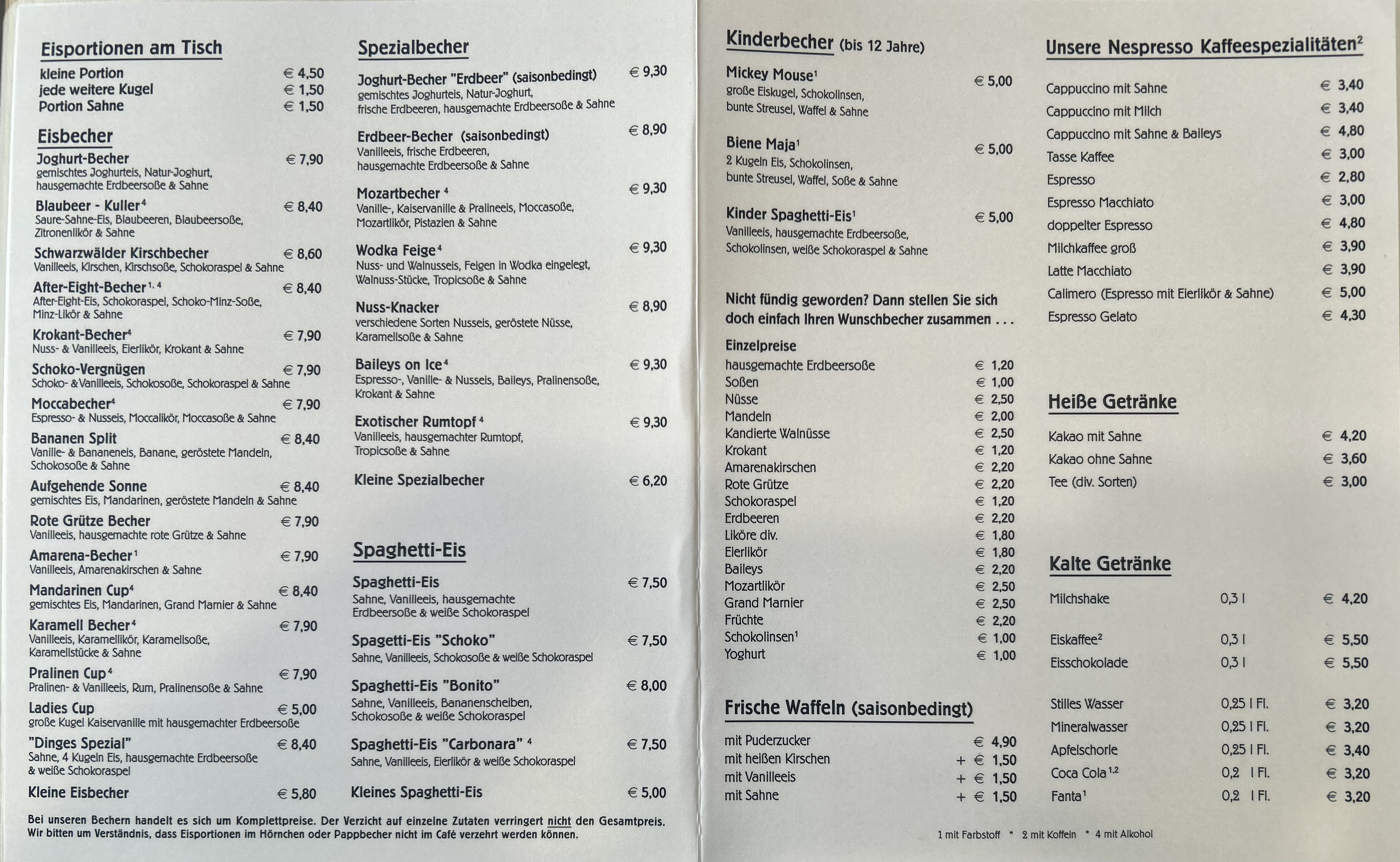 Täglich können sich die Kunden auf 24 wechselnde Sorten und viel Abwechslung freuen. Aktuelle Trends und traditionelle Rezepte in bester Qualität – das zeichnet seit 40 Jahren das Eiscafé Dinges aus. Das gilt auch für die hausgemachten Waffel-Variationen (Vor- und Nachsaison) sowie Kaffee, Espresso und Latte Macchiato von der Marke Nespresso.